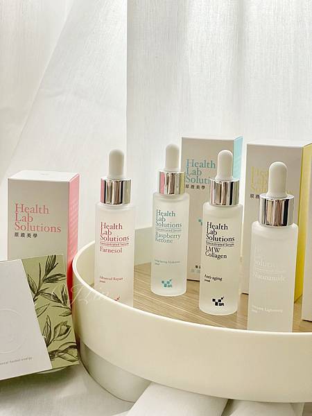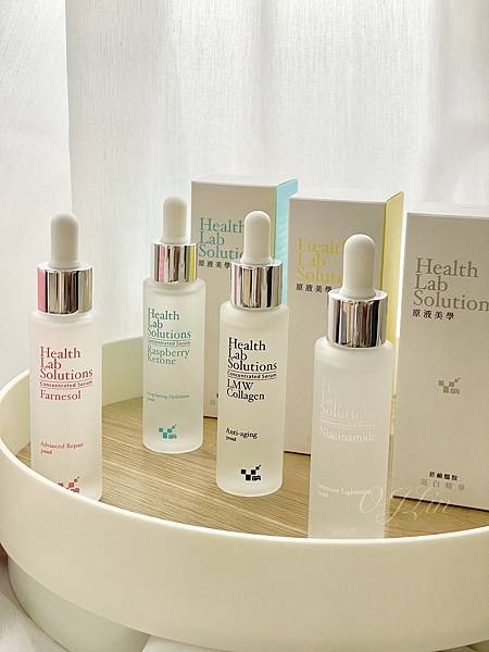 精粹高效原液系列有四款金合歡醇修護/覆盆子酮保濕/菸鹼醯胺美白/膠原蛋白抗老