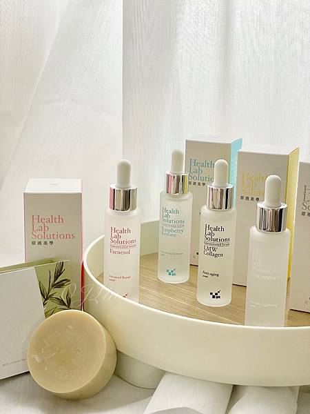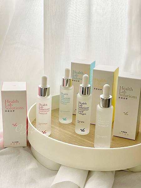 這個期間我會特別使用粉紅色的金合歡醇修護清華跟藍色的覆盆子酮保濕精華這兩罐做加強保養