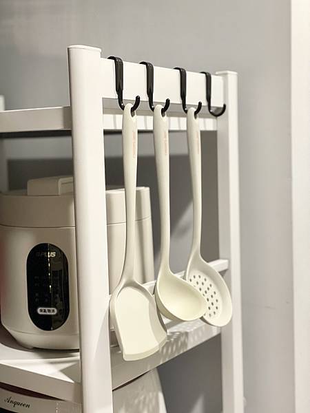 置物架也有附上鉤子可以放上小物加強收納