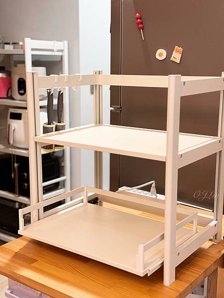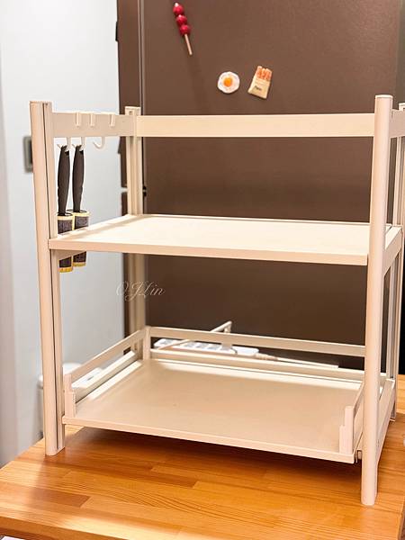 另外我還入手一款層距無段調-下層可抽拉微波爐電器置物架