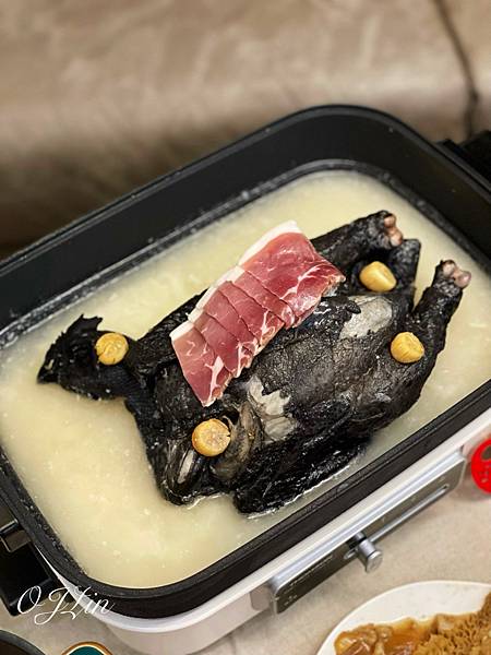 以整隻烏骨雞搭配大骨、干貝、金華火腿等食材