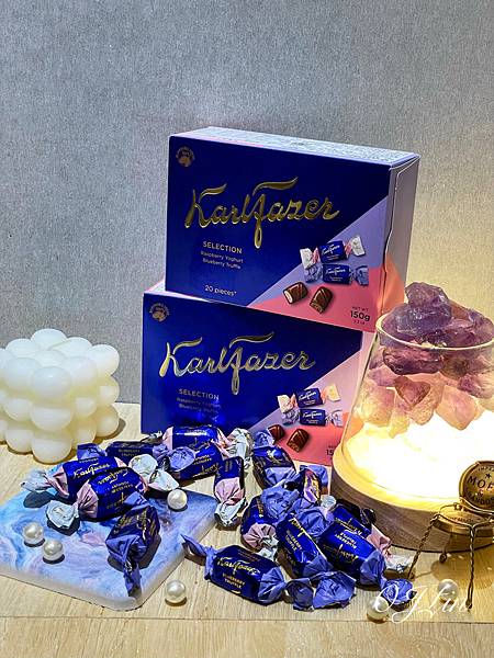象徵芬蘭的純淨與尊重大自然以藍色包裝來自芬蘭最受歡迎的巧克力品牌Karl Fazer